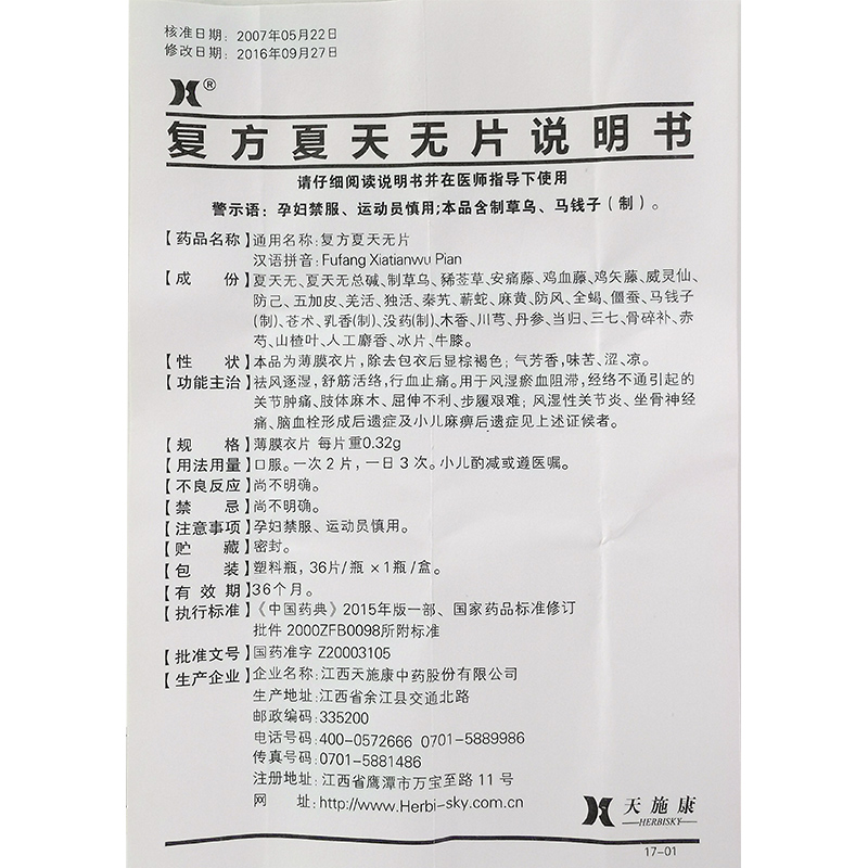 首页>全部商品>专科用药>风湿关节>风湿骨痛>龙虎山复方夏天无片36片