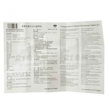 【药品名称】通用名称:多维元素片(21) 汉语拼音:duo wei yuan su pian (21)